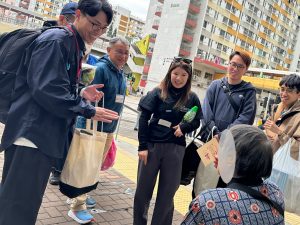2日目には、香港のローターアクターと合同で奉仕事業を実施しました。貧困地域を足で回り、食料や日用品を手書きのメッセージカードと一緒に配布するという活動です。