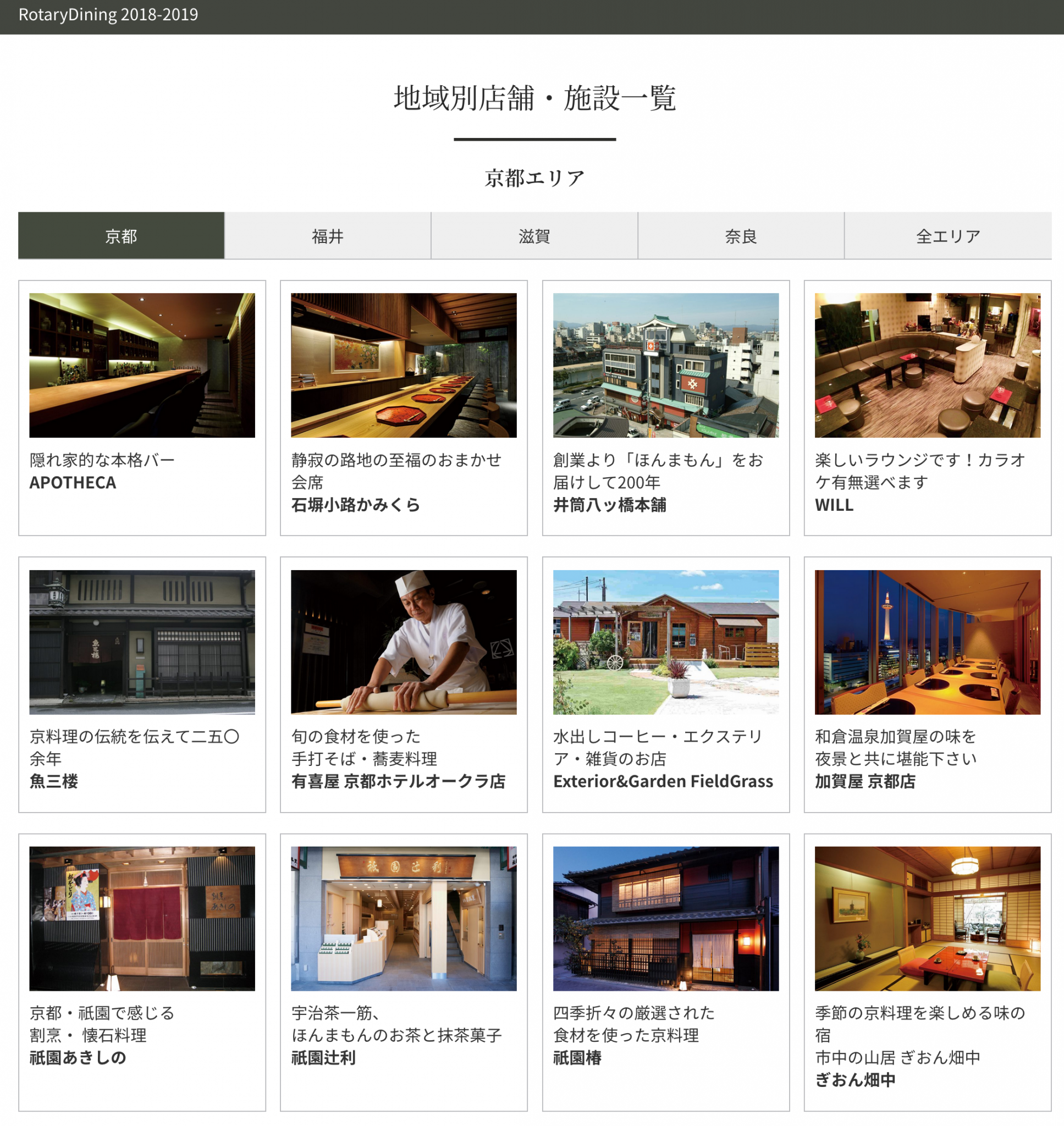 RID2650(京都・福井・滋賀・奈良)広報委員会では地区内ロータリアンの食文化を紹介するガイドブック「RID2650 Rotary Dining2018-2019」を4年ぶりに発刊いたしました。(約100店舗を掲載)掲載店からの特典もウェブサイトでご紹介されています。