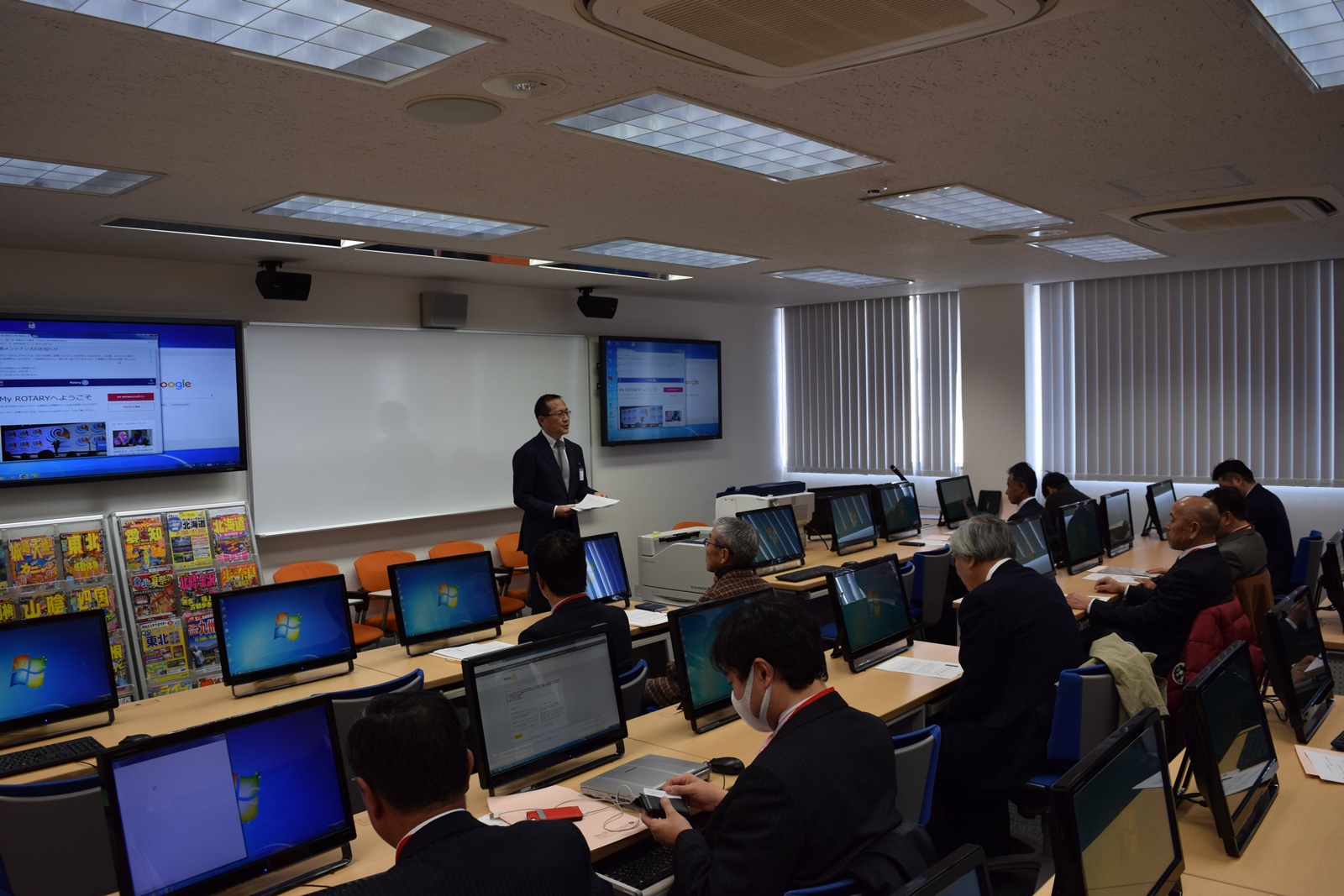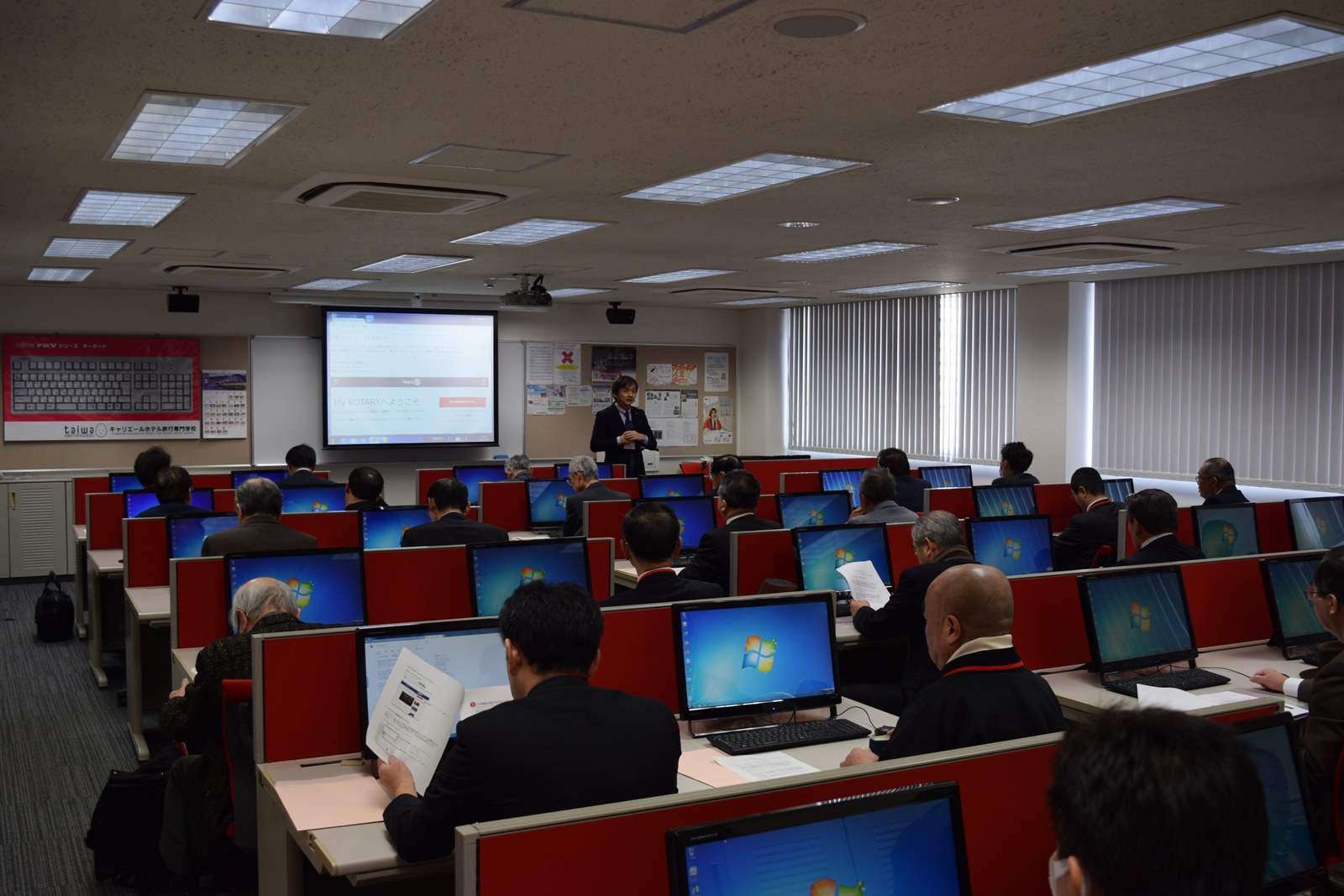 各方面よりたくさんの方にお集まりいただき、田中ガバナーのご挨拶の後に、MyRotaryに登録済の方と未登録の方に別れて実際にパソコンを使用して登録から活用までの説明を行いました。今後、各クラブにてMyRotaryの活用を推進お願いします。