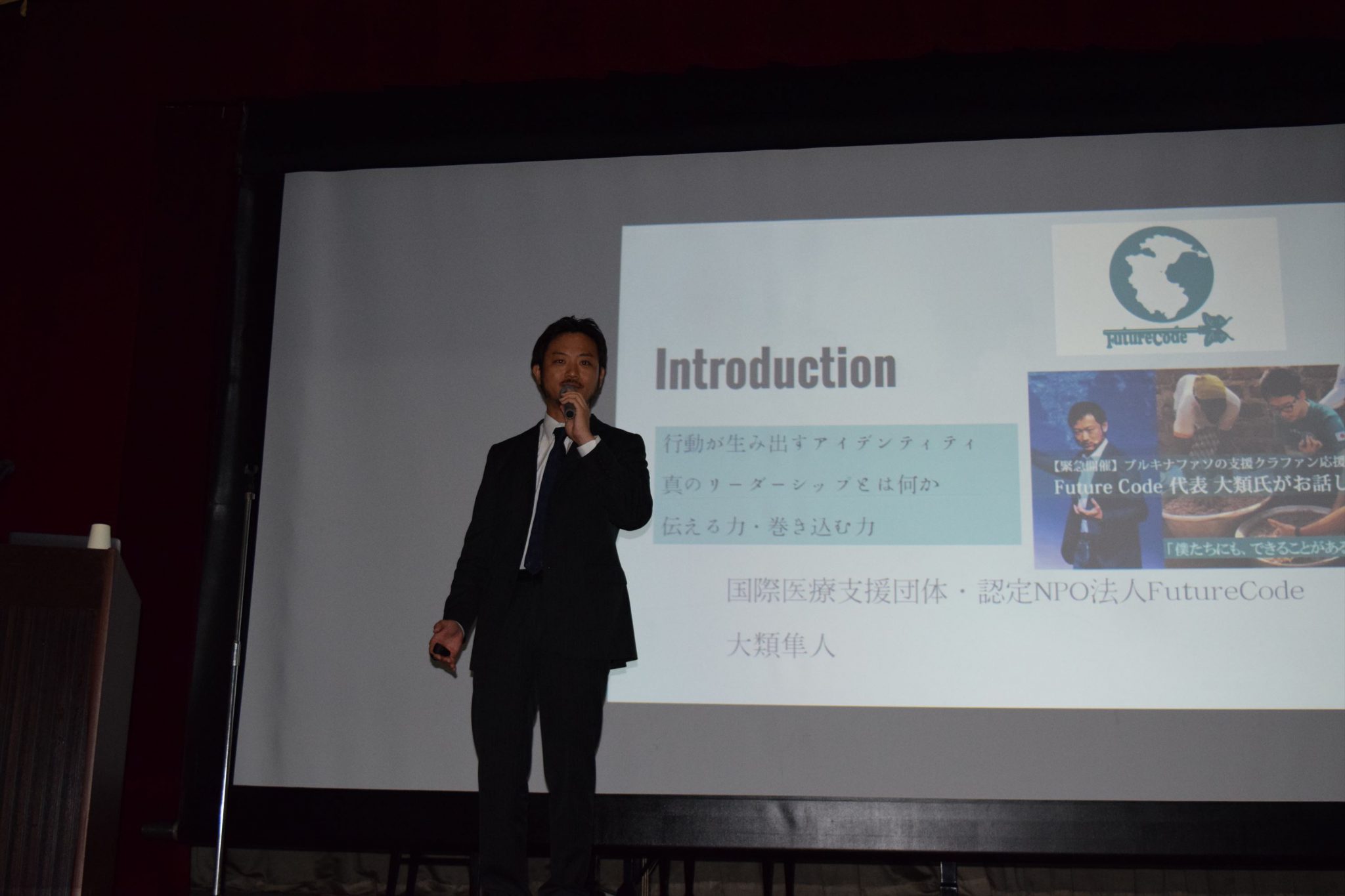 大類さんはこの日、アフリカのブルキナファソからフランスを経由して関西空港に帰国になられたばかりで、現地の話を交えながら「世界を変える行動人=挑戦=私はあきらめない」という演題で基調講演をしていただきました。