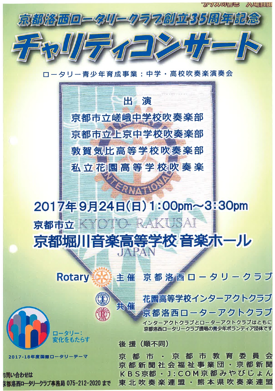 花園高等学校インターアクトクラブ(吹奏楽部が母体)と京都洛西ローターアクトクラブ共催で、