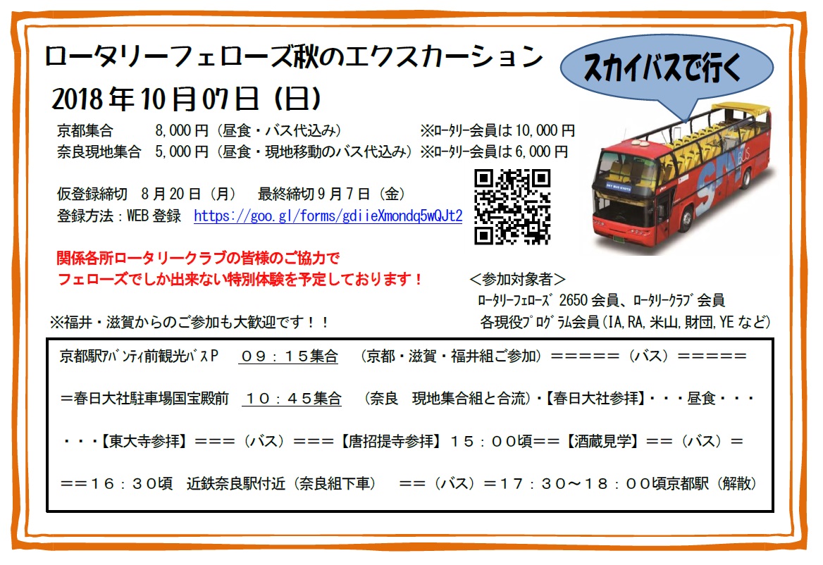 この週間にちなんで、ロータリーフェローズ2650では、奈良方面への日帰りエクスカーションを企画しました。