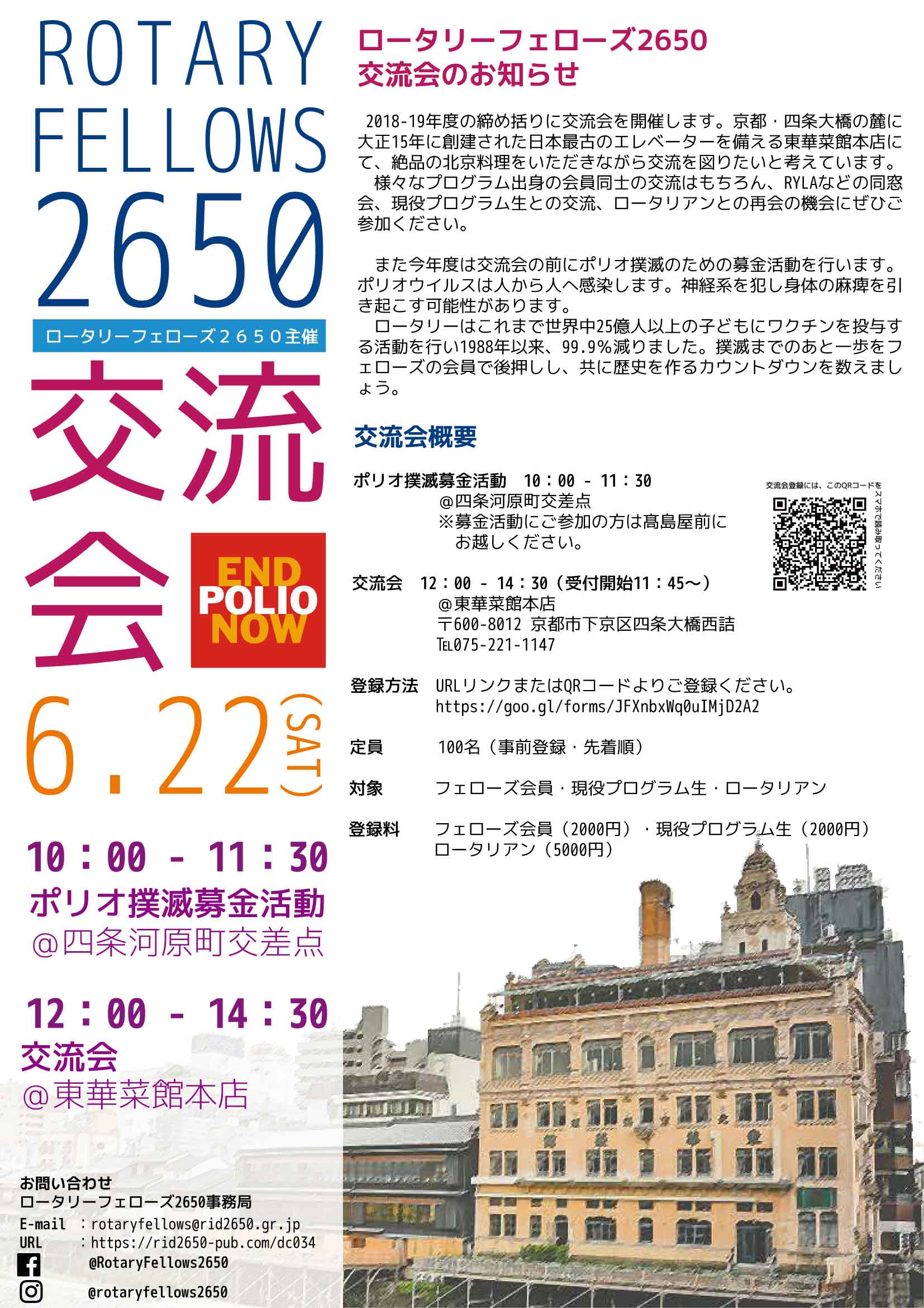 2018-19年度の活動の締めくくりとして、ロータリーフェローズ2650主催の交流会を行います。