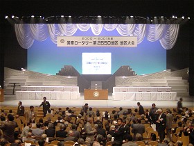 大会第一日目の本会議は以下の内容でした。 12:45 オープニングセレモニー 13:00 開会宣言・開会点鐘 13:05 日本国歌斉唱、ロータリーソング斉唱 13:10 物故会員黙祷 13:17 開会のことば 13:22 ご来賓・参加パストガバナー・参加クラブ紹介 14:12 ガバナー挨拶 |