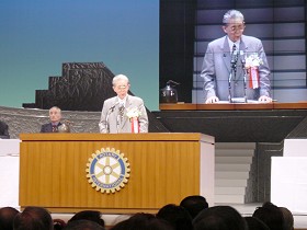 14:17 歓迎のことば−ホストクラブ 14:22 ご来賓祝辞 14:32 R.I.会長代理アドレス 14:54 祝電披露 14:56 WHOご挨拶 15:20 友情交換の場 15:45 「会員増強と退会防止について」 大会アピール 16:00 記念講演「ロータリーと私」 |