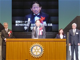友情交換の場 RI第3480地区友情交換委員長 李悌茂様 流ちょうな日本語でのスピーチをされ、感銘を受けました。 |