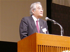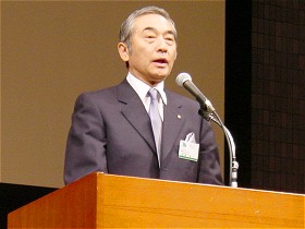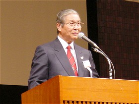 R.I.会長代理講評 R.I.会長代理 千宗室様 今回の大会がいかに気品高く有意義な大会であったか、熱く語られました。さらに、このような大会を成功させたことは、2004年の世界大会にも大いに経験となるであろうと語られました。 |