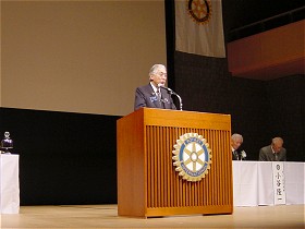 ガバナーエレクト紹介・挨拶 ガバナー 山崎時雄様 ガバナーエレクト 西村二郎様 ガバナーエレクトはアナハイムでの研修内容を説明され、次年度の抱負を熱っぽく語られました。 |