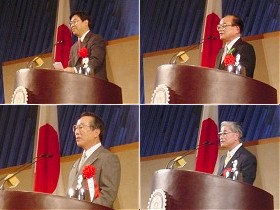 来賓の皆さんより祝辞をいただきました。京都府知事、京都市長、京都商工会議所会頭、ライオンズクラブガバナーの皆さんです。 |