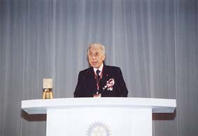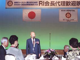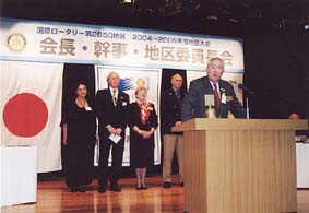 特別セミナー 写真5 国際青少年交換報告 アシュリー・カイモウイツさん(南アフリカ) 写真6 講演 『ポリオ撲滅への道』 世界社会奉仕委員長 園田英次氏 写真7 カンボジア ダルマ園 内田弘慈氏 カンボジアの子供たち RI会長代理歓迎晩餐会 写真8 菅生浩三RI会長代理挨拶 写真9 オープニングセレモニー 小浜 雲浜獅子 写真10 ハープとフルートのアンサンブル演奏 ●地区大会2日目 地区区大会本会議 写真11 本会議 写真12 オープニング ミャンマー シュエピー・ヨアテツ村の皆さん (村長さん、校長先生他)と子供たち 写真13 神谷保男ガバナー挨拶 写真14 菅生浩三RI会長代理アドレス 写真15 千玄室RI元理事、R財団元トラスティー 講話 写真16 アトラクション 地元芸能 柴田音頭 写真17 記念講演 『旅で見たこと生き方について考えたこと』 椎名 誠氏 写真18 呈茶席 新世代プログラム 写真19 体験航海 海上保安庁 『だいせん』新世代プログラム 写真20 体験航海 だいせん船上 写真21 体験航海 だいせん 家族エクスカーション 写真22 敦賀 気比神宮 ●地区大会資料 下のPDF資料をダウンロード出来ます。 資料1(PDF)87KB 資料2(PDF)37KB