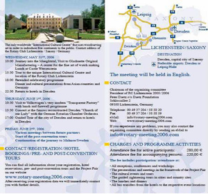 国際ロータリー第1880地区ガバナーのフリッツ氏とリヒテンシュタインRCペータ・デーツ氏と面談し、今年5月末から開催されます「2006年・ドイツ・ザクセンロータリー・アジア会議」のプログラムの内容およびその目的について説明を聞いてきました。フリッツガバナーとデーツ会長から当地区のロータリアンへお誘いのお手紙をいただきましたのでご紹介いたします。(以下訳文)