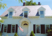 ポール・ハリスの祖父の家(四角い煙突と屋根のデザインがハワード・ハリスの頭文字HH とみえる) |