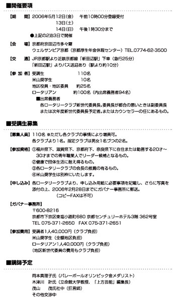2005-06年度第2650地区RYLAは皆様のご協力のお陰で無事開催することができました。