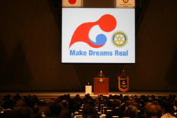 | 第1回本会議に於いて 李RI会長エレクトは「夢をかたちに」というこのテーマを決定するに至った背景について、次の様に述べられました。 「個々のクラブが実施するプロジェクトを決めるのと同様に、会長エレクトが強調事項を決める仕事も大変重要な決断を迫られるものです。私はこれに何ヵ月も費やしました。過去の会長の強調事項を慎重に検討し、このような強調事項から派生したプロジェクトのうちのいくつかに焦点を当ててみました。水、識字率向上、保健と飢餓救済、これらは、ここ数年にわたって永らえてきたロータリー奉仕の分野です。・・・・・これらの強調事項は継続していくべきものであると私は頭の中で知りながら、一方で、私の心はほかの方向に引き付けられていきました。それは、強調事項の候補を検討しているときに、ある数字に遭遇したのがきっかけでした。それは3万という数字です。毎日、避けられるはずの原因で命を落とす5歳未満の子供の数でした。最初、私は、そんな馬鹿な、1桁か2桁、間違って追加されたものに違いないと思いました。もしかしたら、1日ではなく、1ヵ月か1年の間違いかもしれないとも考えました。この21世紀にあって、貴い子供の命が毎日3万も無駄にされているなどということは、到底信じられないことでした。しかし、その数字が間違いではないと知ったとき、なぜこのような事実が存在するのかと自問せざるを得なかったのです。 その答えは数字よりもっと残酷なものでした。子供たちは、医薬品やワクチンや蚊帳などの基本的な物資がないために、肺炎やはしか、マラリアという治療可能な病気で死んでいくというのです。あるいは、一袋10セントで購入できる経口保水塩がないばかりに、下痢性の疾患で死んでいくというのです。飲むにも、体を洗うにも、汚水しかないために、毎日、何千人もの子供たちが、死んでいくというのです。治療可能なはずの病気も、不衛生な環境と栄養失調とが相まっては、子供たちの命を奪う不治の病となります。教育を受けられないがために極貧の連鎖を断ち切ることのできない家族のもとに生まれたばかりに、生きながらえない子供たちもいます。これらの子供たちは、水、保健と飢餓救済、識字率向上の分野のニーズが満たされていないがゆえに、命を失っています。これが理解でき、この愕然たる数字の裏にある問題の根源を理解できたとき、私にはやるべきことが見えてきました。2008-09年度、ロータリーは、過去何年間にも及んで継続されてきた奉仕の強調事項を引き継ぎます。その強調事項とは、私たちが着実に知識と経験を積み重ねてきた、水、保健と飢餓救済、識字率向上です。しかし、皆さんの就任年度に私がお願いするのは、これらの各分野において子供たちに光を当て、世界の子供の凄まじい死亡率を低下させる活動に力を注いでいただくことです。2008-09年度、どうか世界中の子供たちの「夢をかたちに」していただけるようお願いいたします。これが私のテーマであり、皆さんへの挑戦です。 子供の死亡率が開発途上国において最も高いのは事実ですが、どのロータリー地区のどのクラブも、子供の命を救うことができます。シートベルトや煙探知機がないばかりに、毎日、世界のどこかで子供が死亡しています。安全な遊び場がないために、死亡する子供もいます。医療サービスを受けられないほどの貧しさゆえに、死ぬ子供もいます。誰も助けられないから死ぬのではなく、誰も助けないから死ぬというケースのなんと多いことでしょう。しかし、ロータリアンである皆さんと私にとって、助けることは得意分野です。 されば、地元をはじめ遠く離れた地域社会も含めて、このようなニーズに目を見開くことは、私たちの使命です。私たちの仕事は、必要な助けを提供するために、クラブ同士が協力し合うことです。私たちの仕事は、『夢をかたちに』することです。私たちは、安全で幸せな子供時代、健康が損なわれることなく続く子供時代、その頃の彼らの『夢をかたちに』してやるのです。なぜなら、世界の子供はわれらの子供だからです。私たちの仕事は簡単なものです。心と知恵と魂とを注ぎ、命を救うことです。2008-09年度、私たち一人ひとりがこの仕事を全うするなら、年度の幕が降りるとき、私たちは素晴らしいことを達成しているに違いありません」と述べられました。 さて、李会長エレクトの次年度テーマについてのスピーチに続き、RI会長ウィルキンソン氏は第2回本会議でそのテーマ「夢をかたちに」について世界中の子供たちすべてを救おうと言っているのではありません。それは私たちの力の及ばない願いです。しかしながら、私たちの力の及ぶところにあるのは、あらゆる支援源を駆使して、力の限りを尽くし、できる限り無駄死にをなくすことです。クラブにおける奉仕のやり方を変えるのではありません。強調事項を慎重に方向付けて考えることによって、子供たち