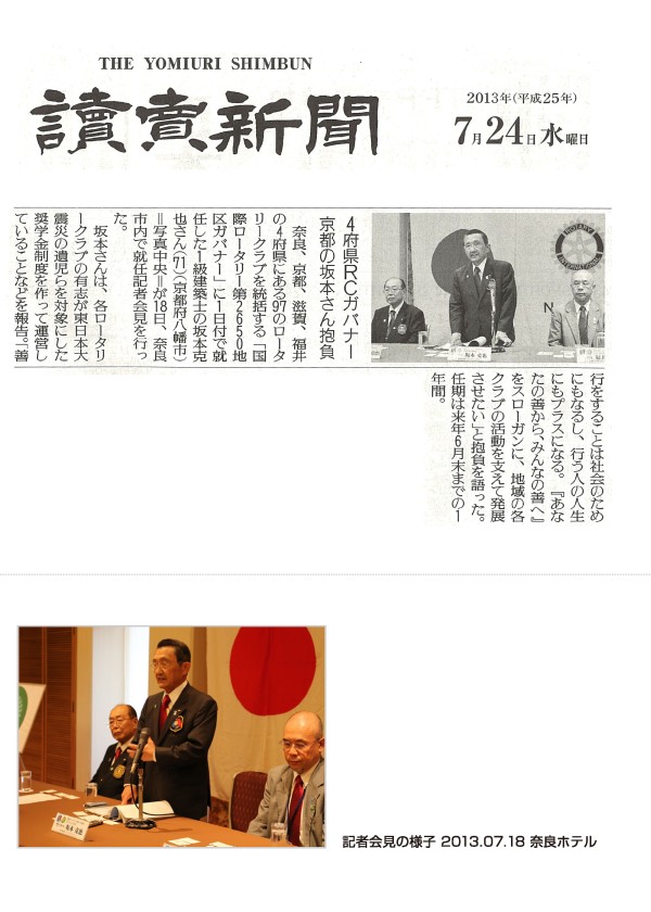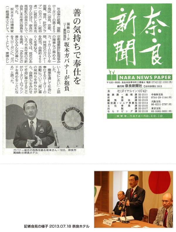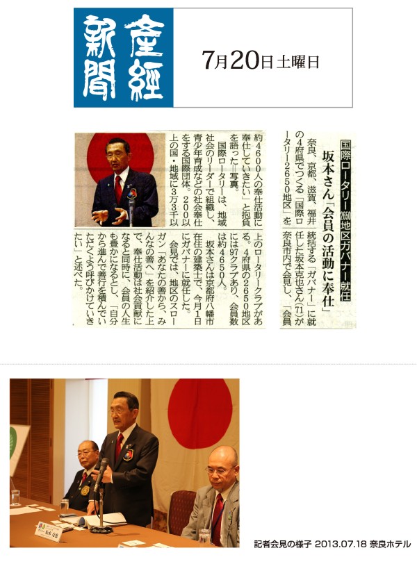 2013年08月23日 | 坂本克也ガバナー記者会見が新聞各紙に掲載されました
